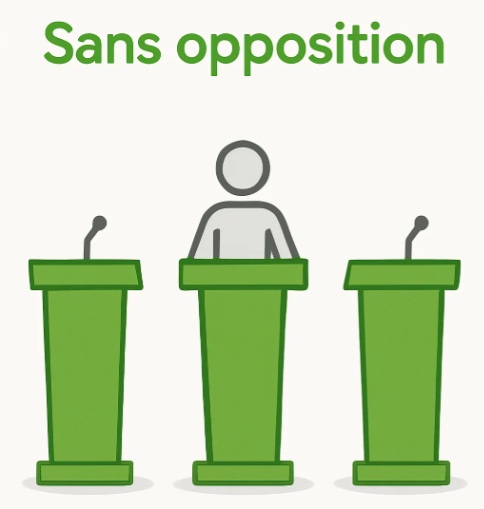 Sur le plan légal, rien à redire : la loi prévoit qu’un candidat unique est proclamé élu. Mais… sur le plan démocratique, c’est pas idéal.